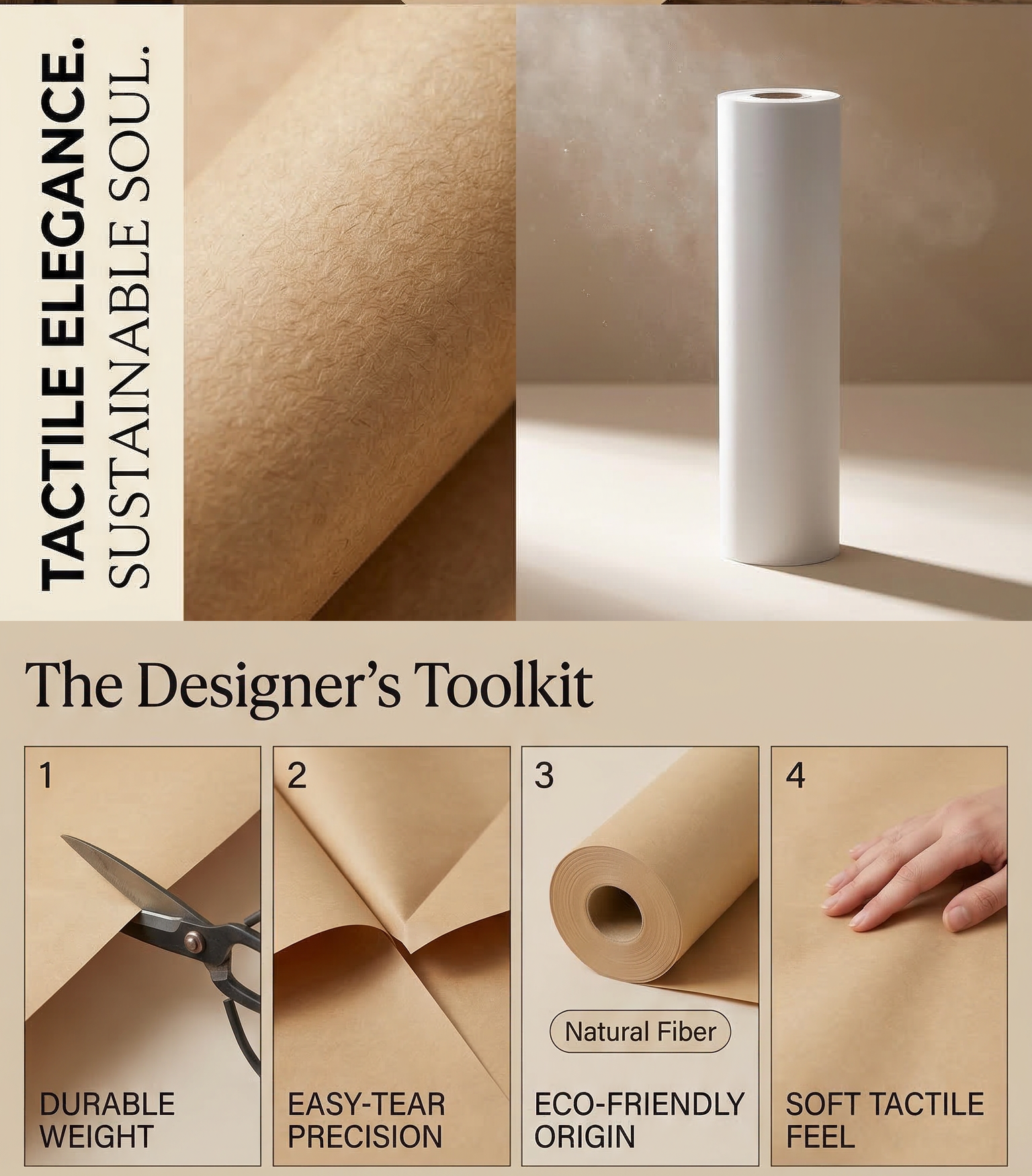 Specifications: Available in weights from 40gsm to 450gsm and custom lengths. Choose from natural brown or bright white options.