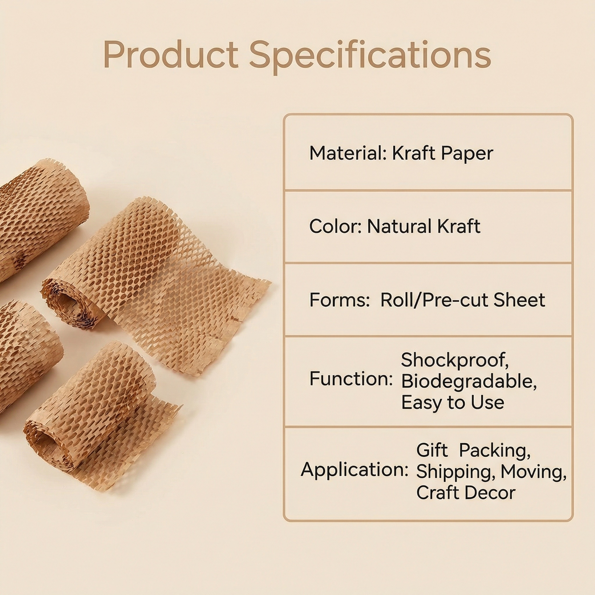 Our premium honeycomb paper rolls are a revolutionary, environmentally friendly protective packaging solution and a perfect alternative to bubble wrap. Made from high-quality kraft paper, its unique honeycomb structure provides excellent cushioning and shock absorption for fragile items during transport, handling, and storage. As an FSC and ISO certified product, it is environmentally friendly, biodegradable, recyclable, and durable, suitable for packaging, shipping, e-commerce, handicrafts, and more.