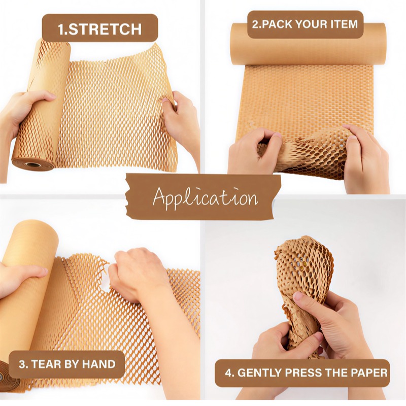 Wrap Securely: Envelop the product with the stretched honeycomb paper. For added security, secure the edges with kraft tape or twine (as shown in the picture).